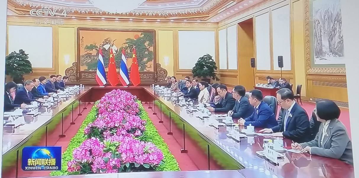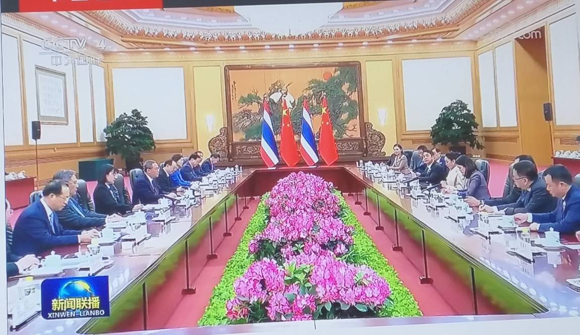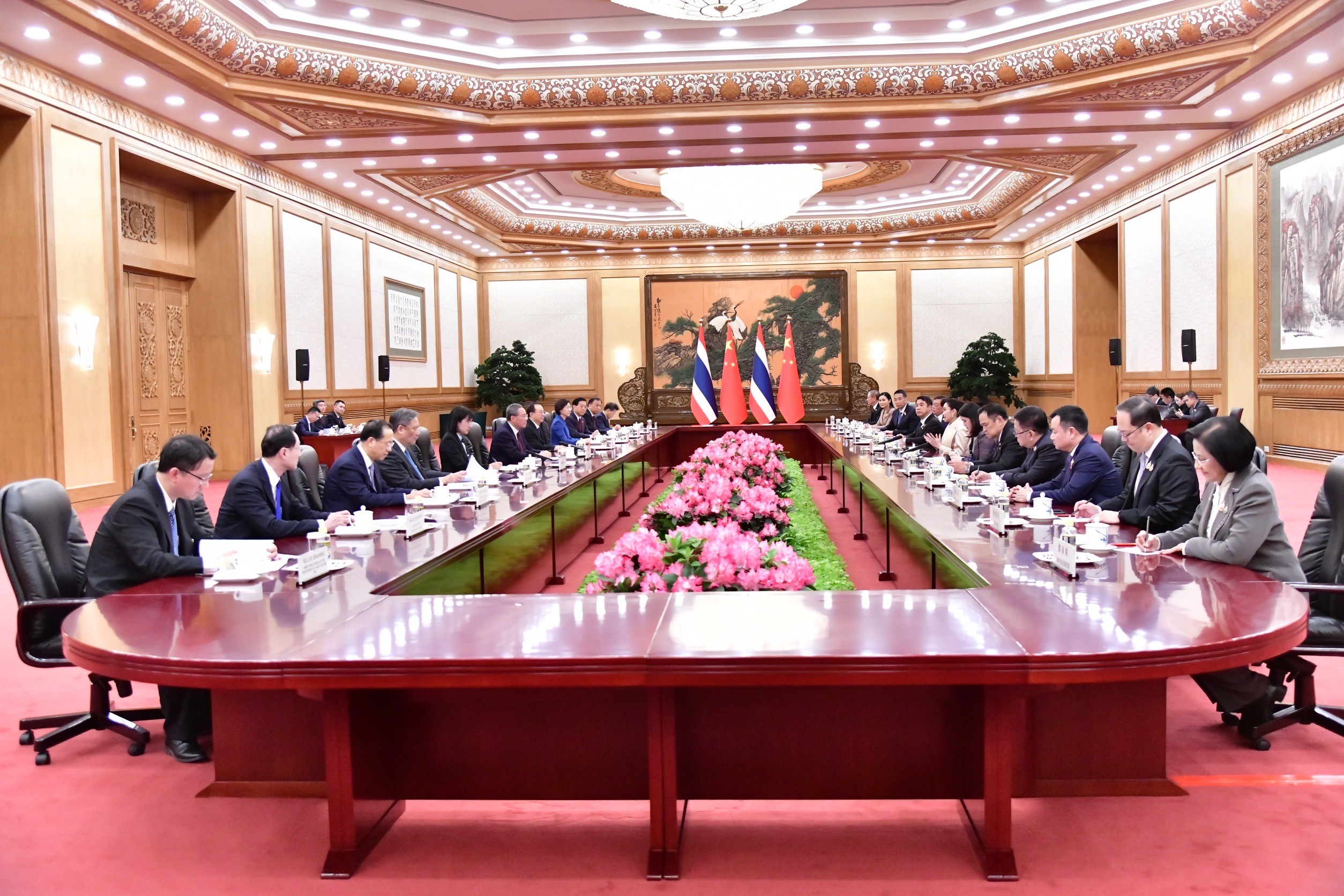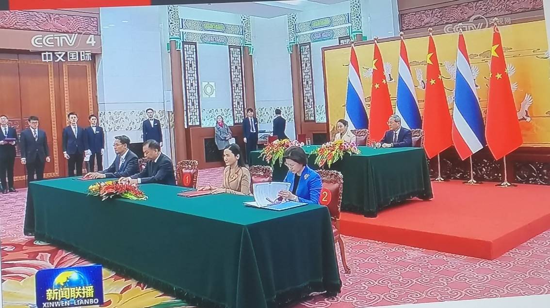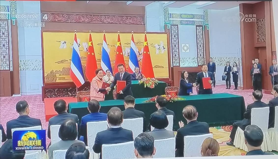 H.E. Ms. Paetongthan Shinawatra, Prime Minister of Thailand and H.E. Mr. Li Qiang, Prime Minister of the People's Republic of China witnessed the signing ceremony of 14 agreements between Thai-Chinese agencies, on 6th February 2025 at the North Hall, Great Hall of the People, Beijing, consisting of : 1. Joint Declaration on Developing a High-Level Comprehensive Strategic Partnership through a Forward-Looking and People-Centered Vision (no signature) 2. MOU on promoting cooperation in artificial intelligence 3. MOU on Exchanges and Cooperation in the Field of Economic Development 4. MOU on promoting cooperation in investment in green development 5. MOU on promoting investment in the digital economy 6. MOU on Criteria for Inspection, Quarantine and Veterinary Hygiene of Farmed Fishery Products Exported to the People's Republic of China 7. MOU on cooperation on a single point electronic data linkage system for cross-border trade. 8. MOU on Mutual Recognition for the Customs Department's AEO Entrepreneurship Program and the China Customs Enterprise Credit Management Program. 9. MOU on cooperation in promoting the establishment of a joint laboratory in artificial intelligence 10. MOU between the Ministry of Higher Education, Science, Research and Innovation and the National Space Administration of China regarding equipment to survey the surrounding space conditions of the Thai-Chinese lunar surface under the Chang'e Lunar Reconnaissance Orbiter No. 7 space mission 11. MOU on cooperation in the peaceful use of nuclear technology. 12. MOU on cooperation in postal services 13. MOU on the exchange of news and information 14. MOU between the Public Broadcasting Service of Thailand and China Media Group