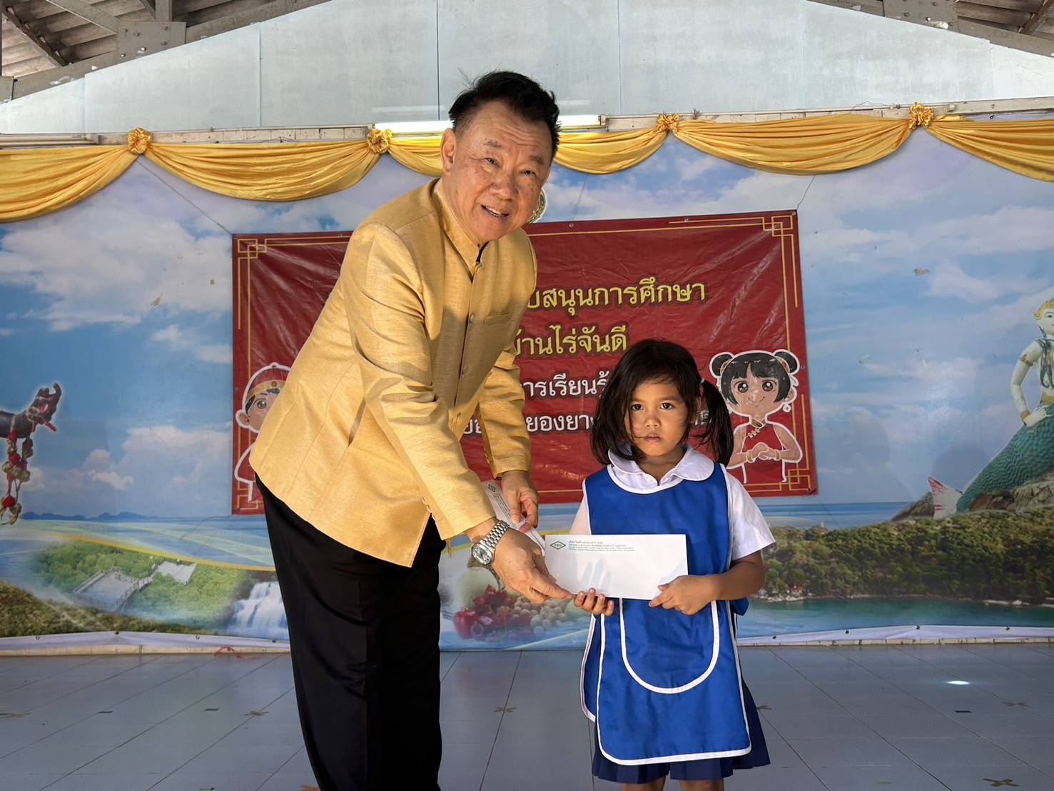 Dr. Luckchai Kittipol, Chairman of LK-RICH Industrial Estate, joined the ceremony to present educational support funds to students of Ban Rai Chandi School on June 25, 2025.