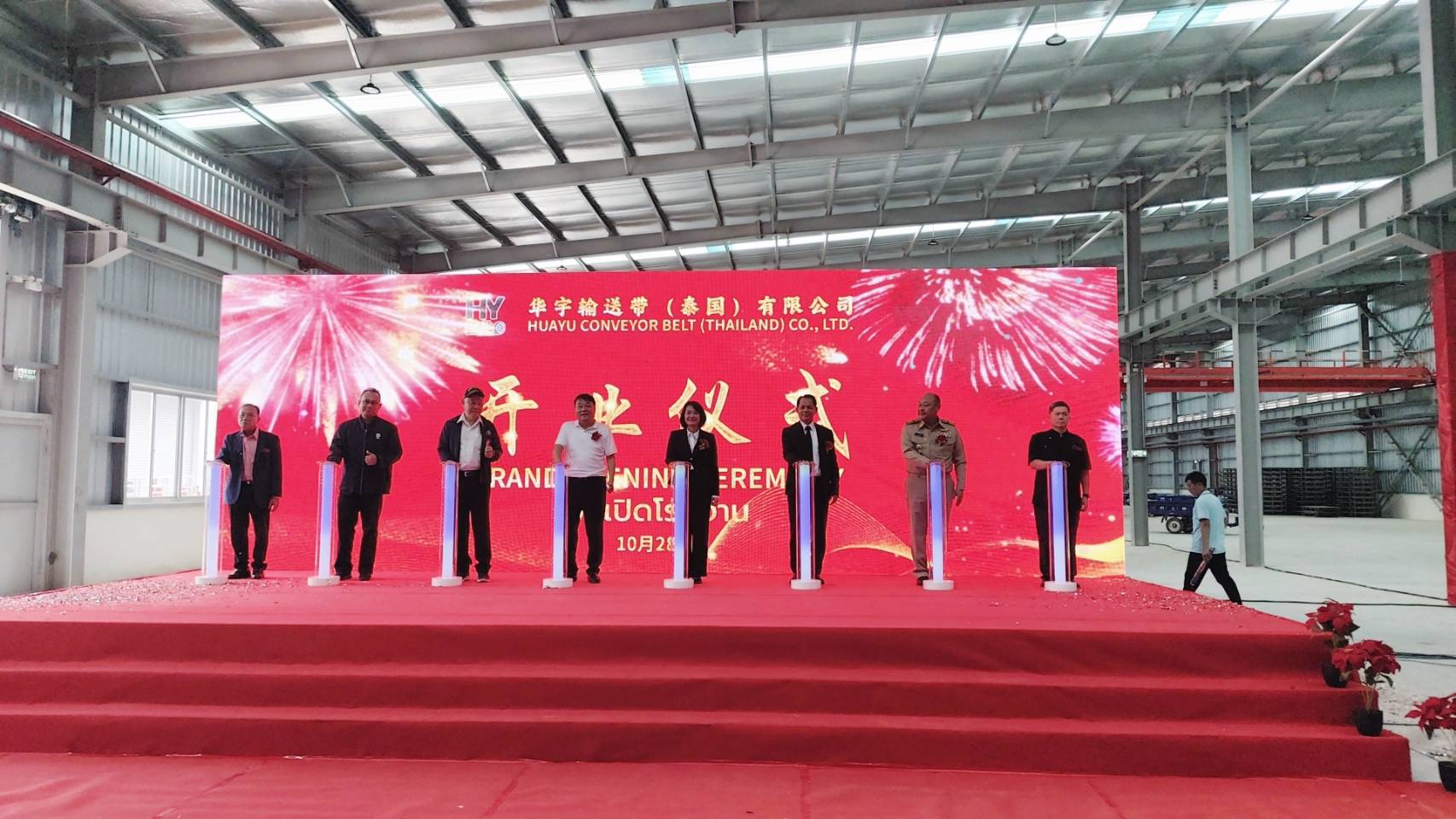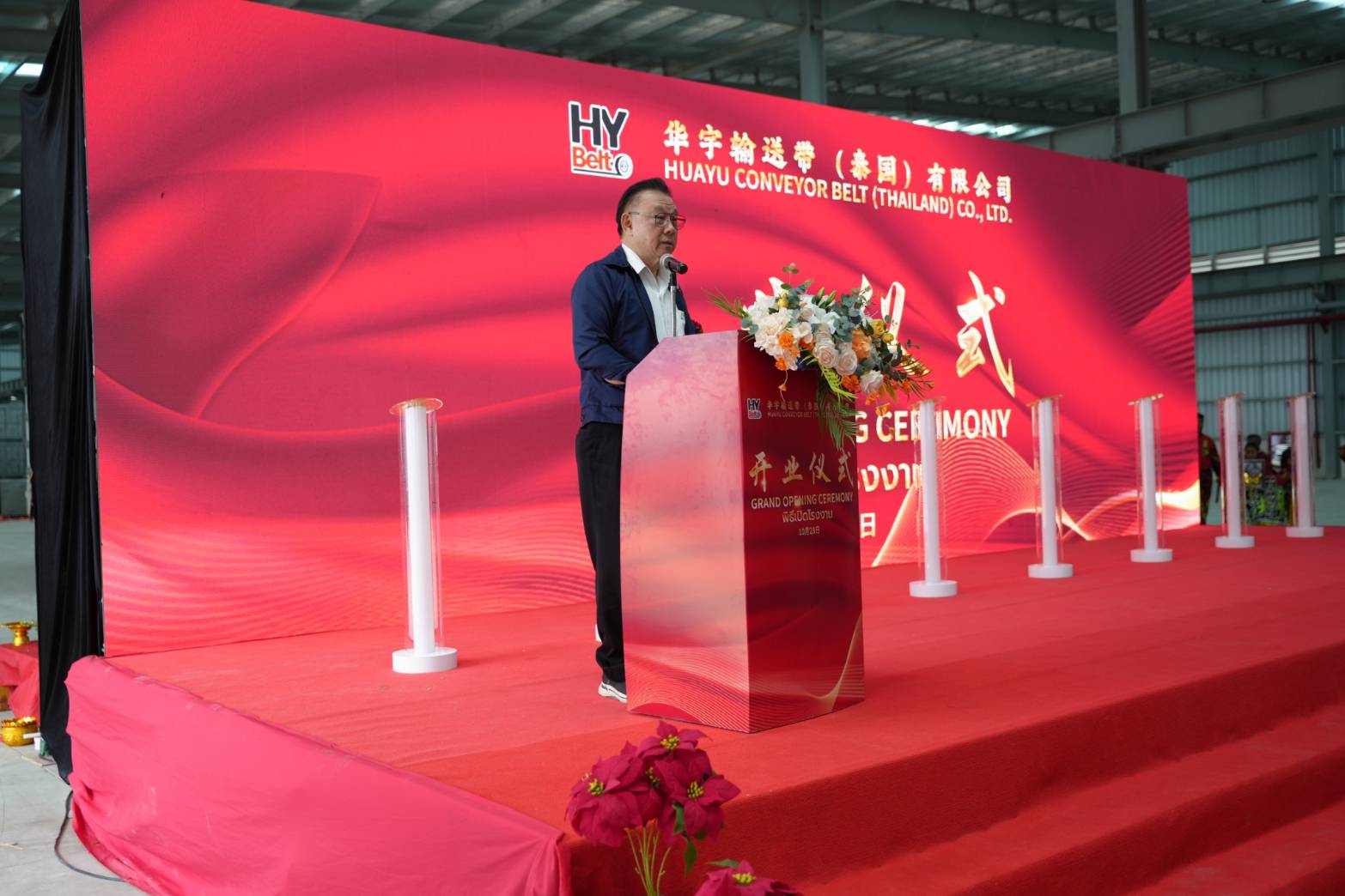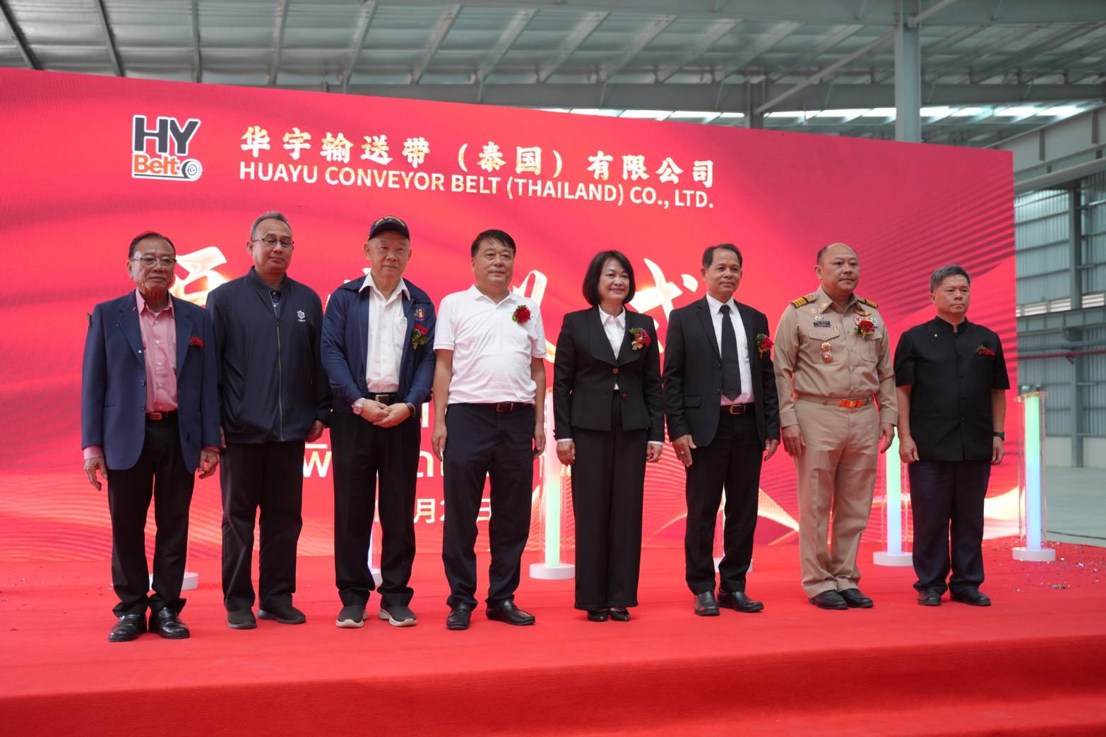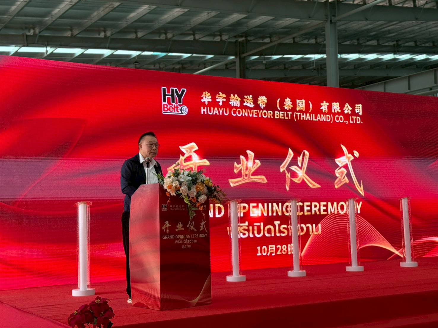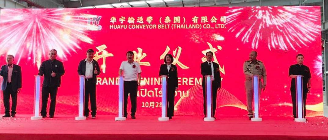 Huayu Conveyor Belt (Thailand) Co., Ltd. from Qingdao, Shandong Province, held an opening ceremony for its conveyor belt manufacturing plant at Luckchai-Rayong Industrial Estate, Rayong Province, which presided by the Deputy Governor of Rayong Province and attended by local leaders on October 28, 2025.